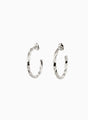 Handcrafted sterling silver hoop earrings featuring a twisted surface that creates subtle optical effects. These elegant hoops echo traditional metal forming techniques while offering a contemporary aesthetic. The twisted design creates an interplay of light and form that evokes a sense of movement, inviting closer observation. Perfect for both everyday wear and special occasions, these versatile hoops add sculptural interest. Part of the Reflective Bodies Collection. Handcrafted in Australia by AEJL Jewellery.