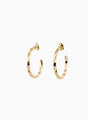 Handcrafted 9kt gold hoop earrings featuring a twisted surface that creates subtle optical effects. These luxurious hoops echo traditional metal forming techniques while offering a contemporary aesthetic. The twisted design creates an interplay of light and form that evokes a sense of movement, inviting closer observation. Perfect for both everyday wear and special occasions, these versatile gold hoops add sculptural interest and timeless elegance. Part of the Reflective Bodies Collection. Handcrafted in Australia by AEJL Jewellery.